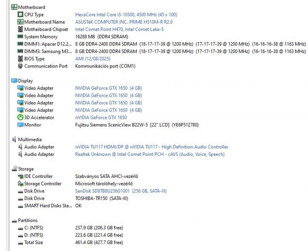 | Processzor: | Intel i5 10500 6C/12T x3100mhz |