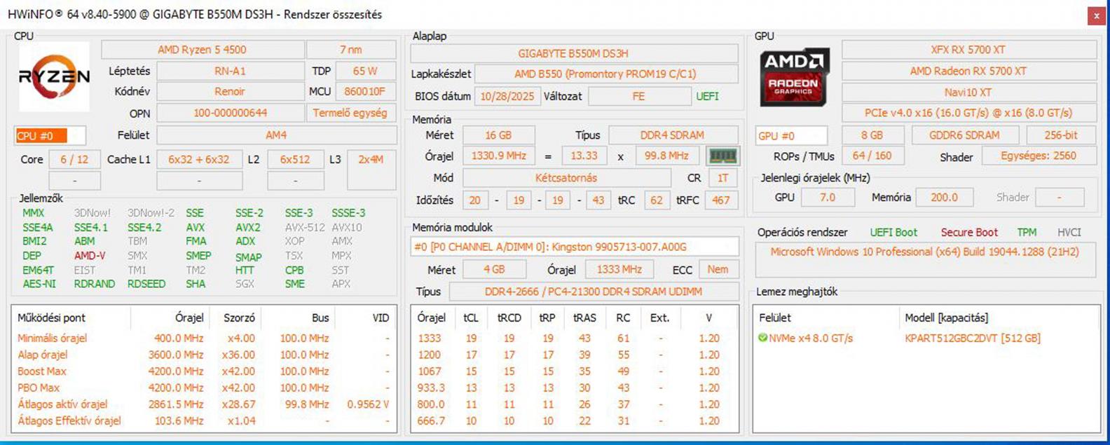 | Processzor: | Ryzen5 4500 6C/12T x 3600mhz |