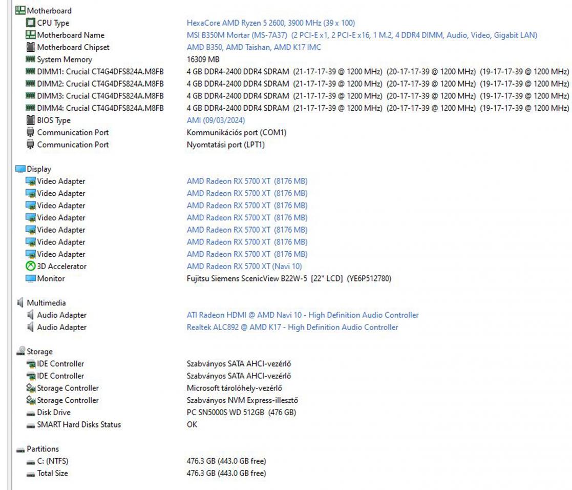 | Processzor: | AMD Ryzen5 2600 6C/12T x 3400mhz |